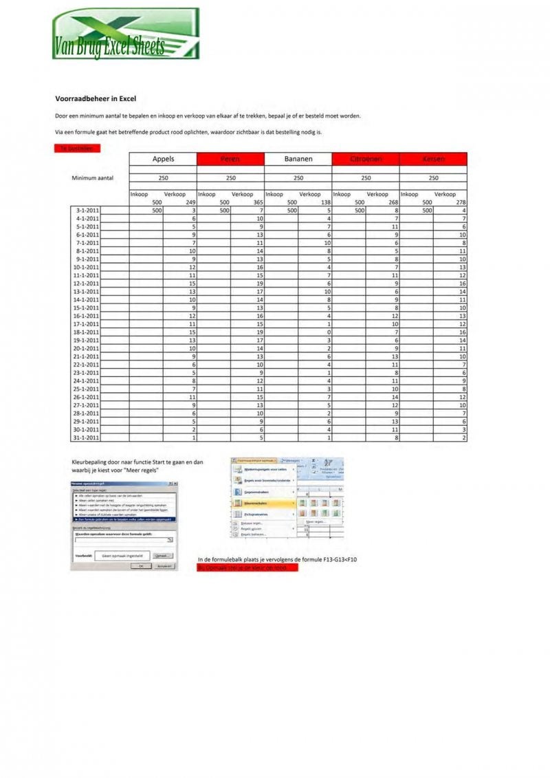 Van brug excel sheets